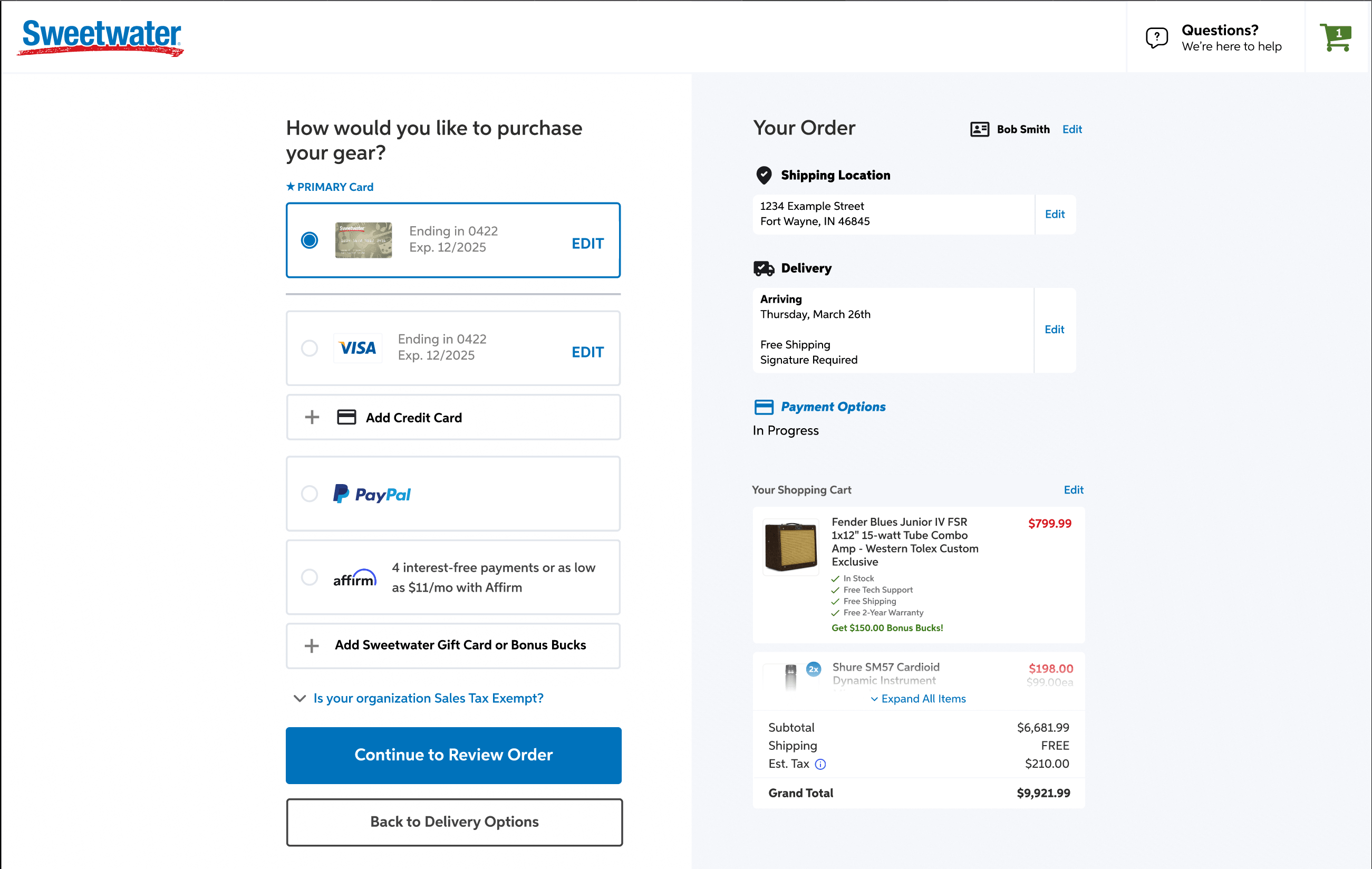 While I primarily work on internal tools at Sweetwater, I have done design work for the website as well. The most notable of which is our new checkout process that is currently in an A/B/C test setup, currently released to a small percentage of users as we continue to iterate and improve.